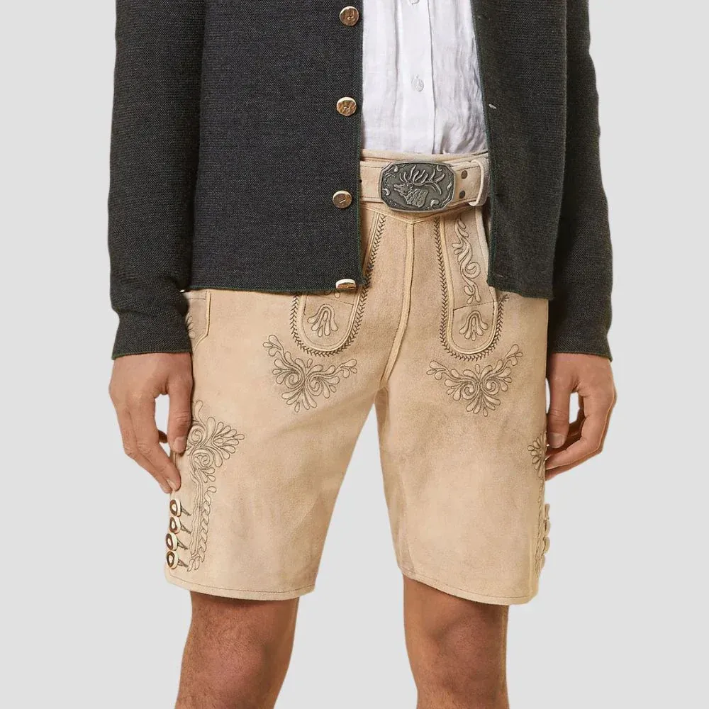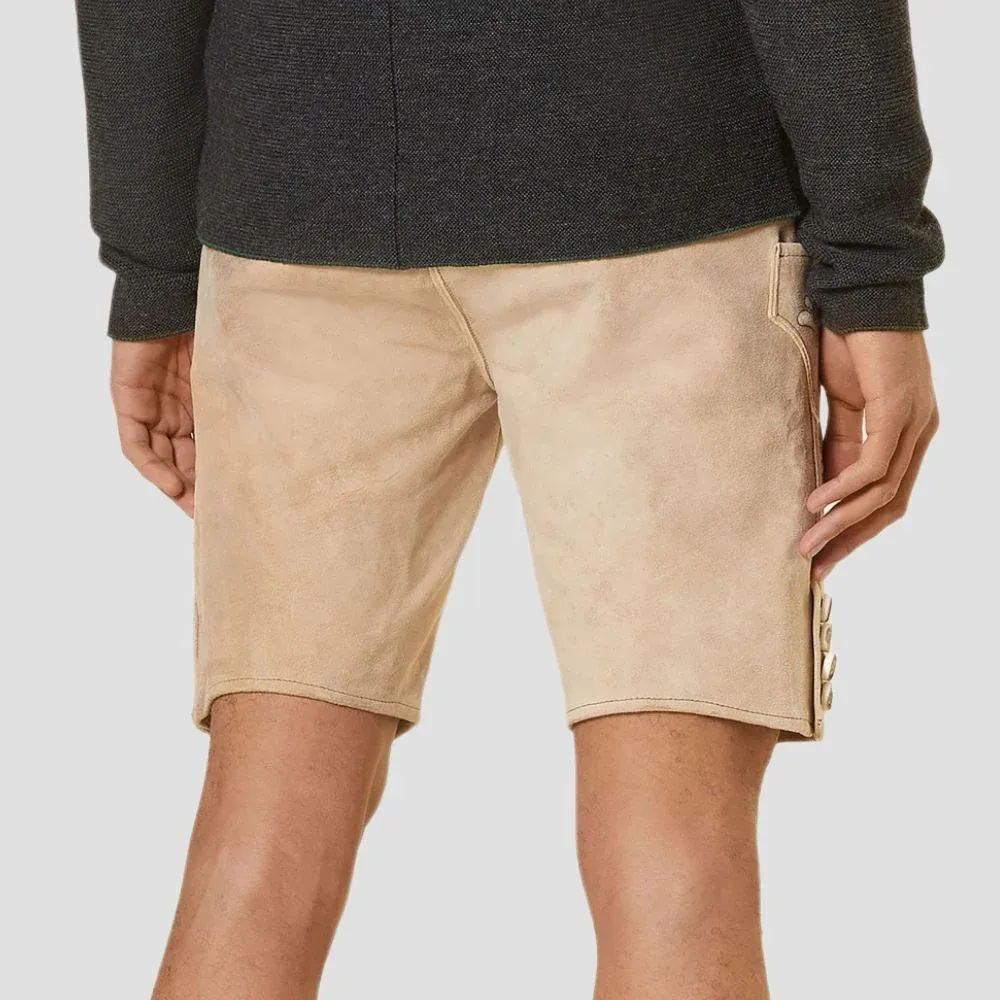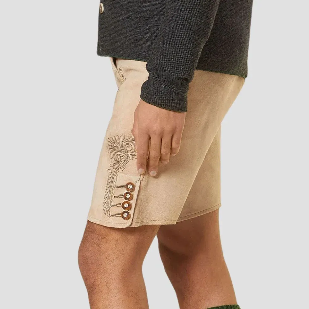 Experience authentic Bavarian tradition with the Alpine Beige Lederhosen, crafted from premium cow, goat, and deer suede leather. Designed to combine classic German craftsmanship with subtle modern styling, these lederhosen are the perfect choice for festivals, cultural events, or formal occasions.