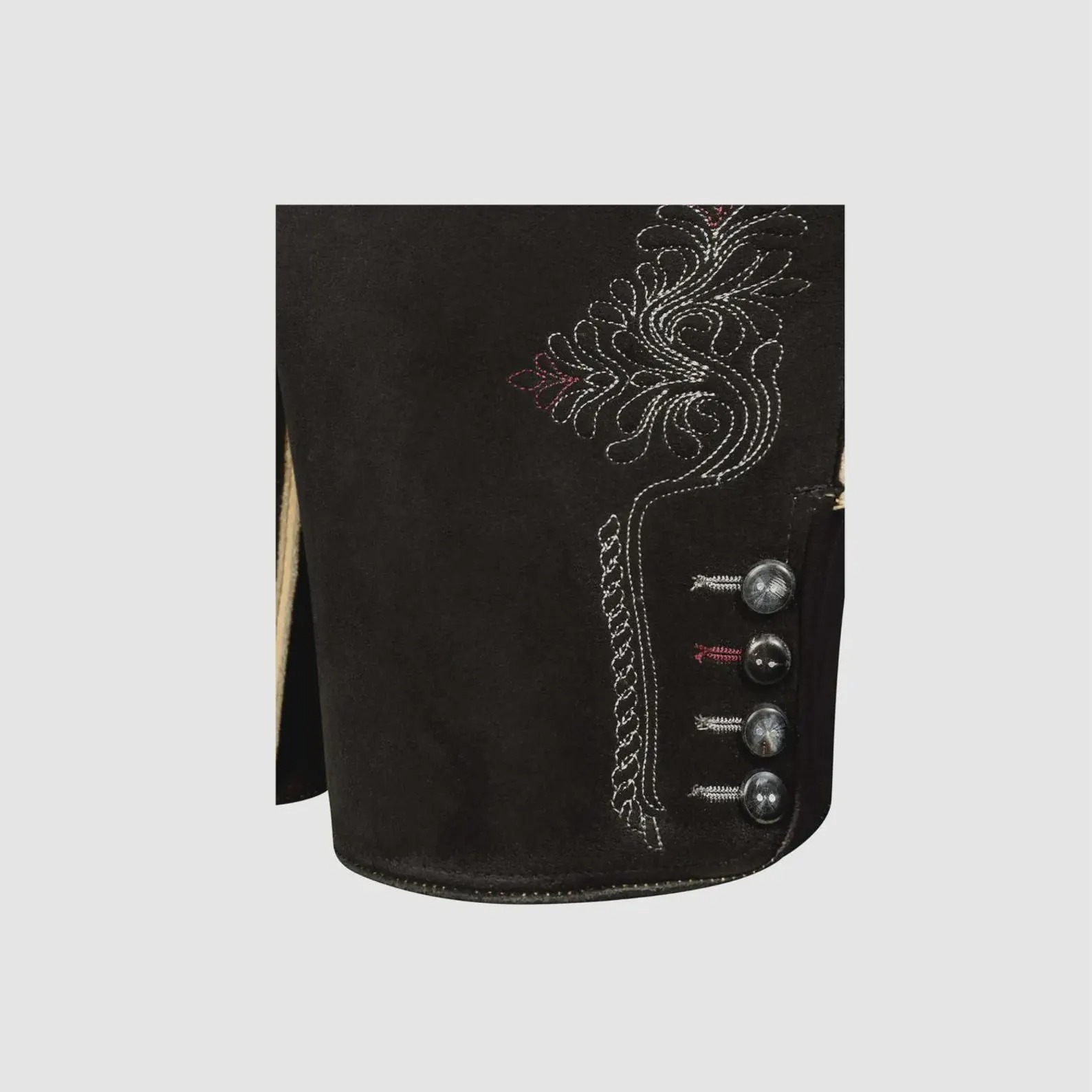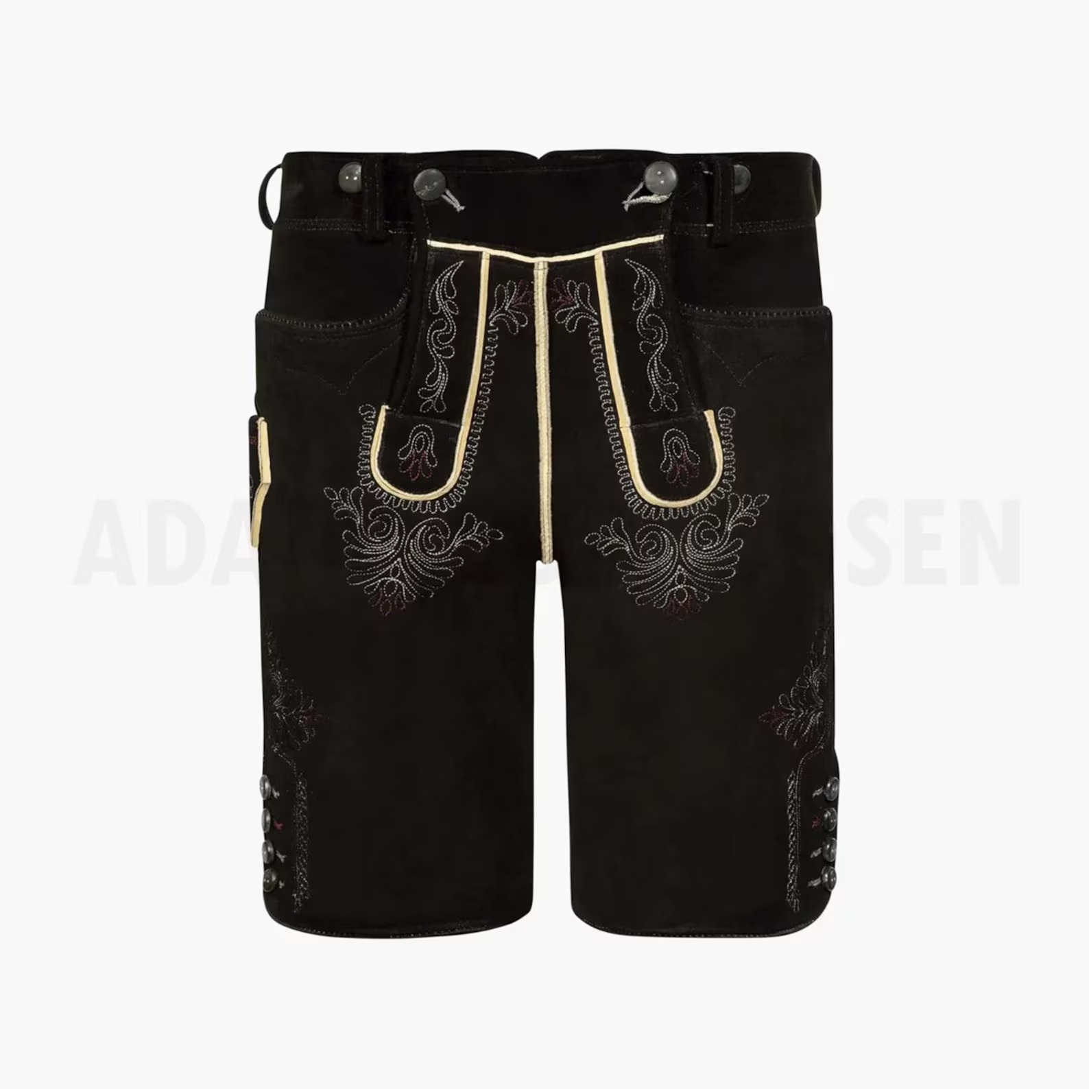 Floral Embroidered Dark Bavarian Lederhosen – Authentic German Attire